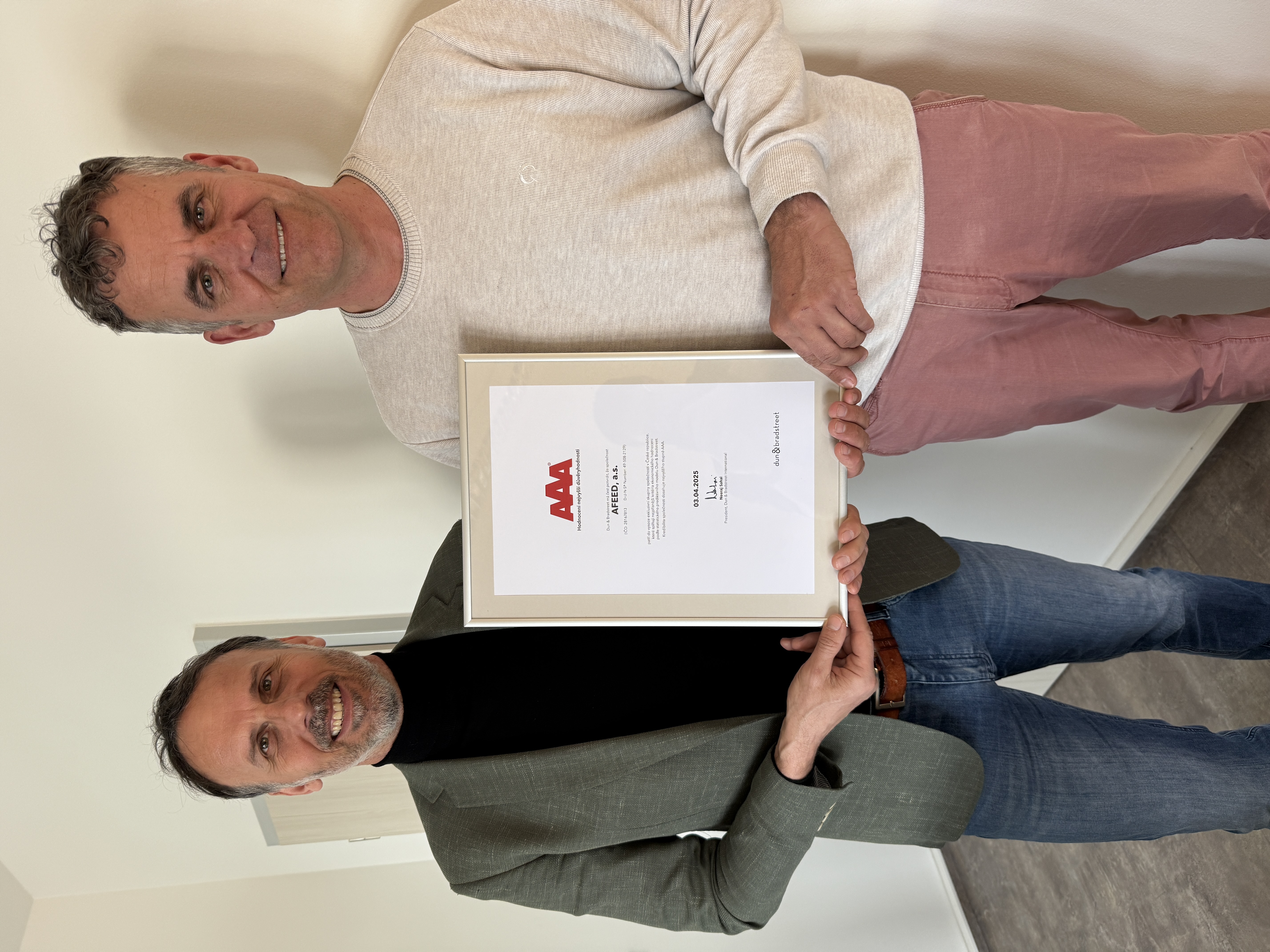 Společnost AFEED se zařadila mezi elitu českého podnikatelského prostředí. Renomovaná mezinárodní agentura Dun & Bradstreet jí udělila certifikát hodnocení nejvyšší důvěryhodnosti, který je udělován jen stabilním a prověřeným firmám s výjimečným hospodařením.