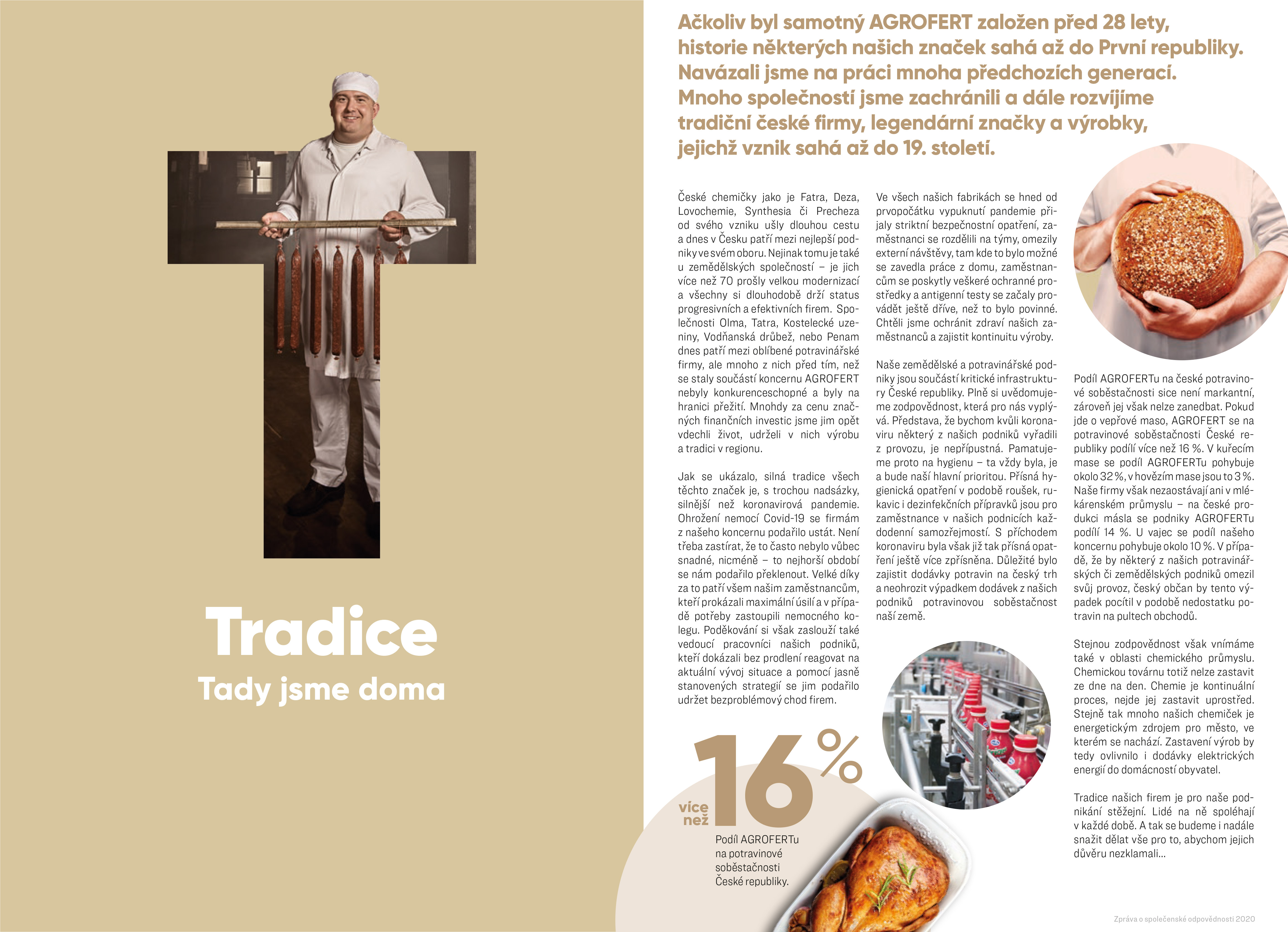 Agrofert na českém trhu působí již více než čtvrtstoletí. Za tu dobu naše společnost ušla velký kus cesty, proměnila se a posunula dopředu. Naše základní hodnoty však zůstaly stejné. Jednou z nich je také TRADICE. Jsme hrdí na to, že v našem koncernu máme takové značky, na které se lidé mohou spolehnout v každé době.